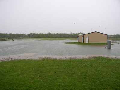 There was one small problem. After a heavy Gulf Coast rain, the building looked like it was surrounded by a moat. Here’s what it looked like after getting six inches of rain in one afternoon.