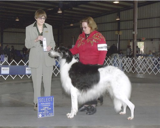 Last summer we took in four rescued Borzoi, one from the Houston area (quickly re-homed) and three from Oklahoma, two bitches and a neutered male. The three Oklahoma rescues were in terrible shape when we got them: rotten teeth, black with flea dirt, badly matted, suffering from skin problems and full of parasites. While not starved, they were all undersized and clearly suffered from malnutrition. They all went directly to our vet’s for treatment: the girls were spayed, their coats were cut off, any bad teeth extracted, vaccinations given and tests run for heartworm.
